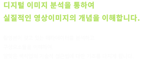 영상소스의 디지털 이미지 분석 이론을 체계적으로 배우고 싶은 컬러리스트 |